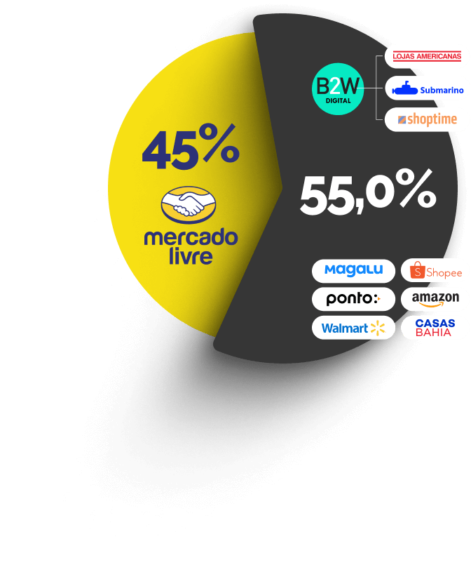 Juntando todos os outros marketplaces eles representam 55% de vendas.